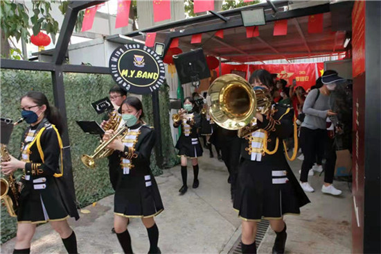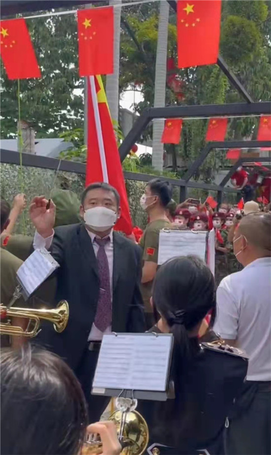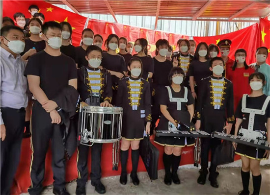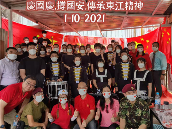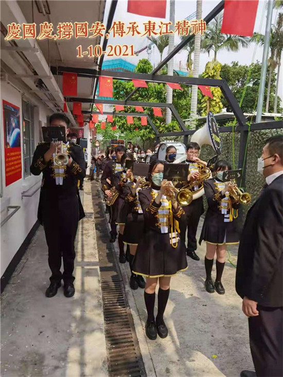愛國從我做起,香港鳴遠中學樂隊參加香港東江縱隊慶國慶活動。