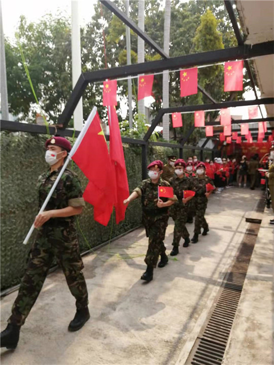 香港大中華通訊社讯| 【記者 愛欽】2021年10月01日「為慶祝中華人民共和國成立72週年幾中華人民共產黨成立100週年」 由東江縱隊老戰士聯誼會主辦的“慶國慶,撐國安、傳承東江縱隊精神”升旗典禮,本次活動各界參會人數200餘人,在香港元朗東江縱隊老戰士聯誼總會總部隆重舉行。