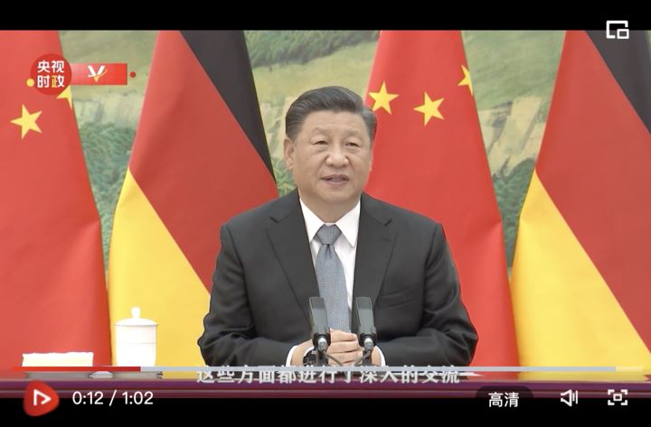 国家主席习近平10月13日同德国总理默克尔举行视频会晤。双方在友好的氛围中回顾近年中德、中欧关系发展并就相关问题深入交换意见。