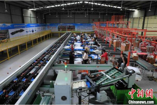 中新网凉山10月17日电(起钰婷)清洗、干燥、分拣、套袋、装箱、贴标……16日,四川省盐源县电商物流农业产业园分拣中心进行着一项重要工作:打包4000箱高品质苹果。等候在分拣中心门口的大货车,将带着这些苹果奔赴广东佛山的各大商超。