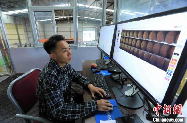 自动分拣设备系统能识别400多种影响苹果品质的因素,对苹果进行精准分类。 王磊 摄