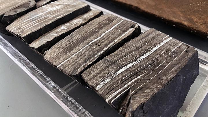 △这是富有机质纹层状细晶泥质灰岩。(总台央视记者许永松拍摄)