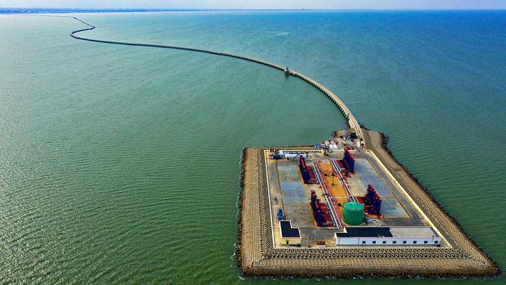 渤海莱州湾,碧水蓝天,群鸟飞翔,井架高耸。这是胜利油田青东5海油陆采平台呈现的景象。海油陆采,就是以建设人工岛的方式开采海滩石油。胜利油田的这个海油陆采平台,以清洁生产的方式,构建了和谐相处的生态圈。