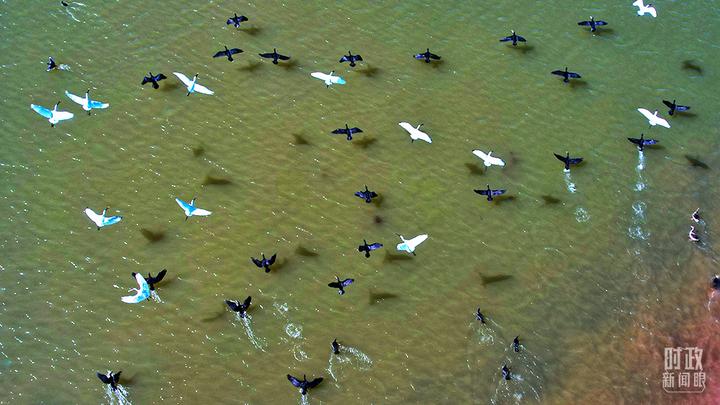 △当天的黄河三角洲上,芦花飘摇、候鸟成群。(总台央视记者彭汉明、国广记者李晋拍摄)