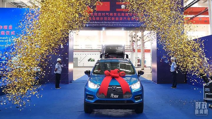 △2021年7月,中国老挝南南合作项目——万象赛色塔低碳示范区新能源车发运仪式在长沙举行。28辆新能源汽车将助力当地发展绿色交通。(图/视觉中国)