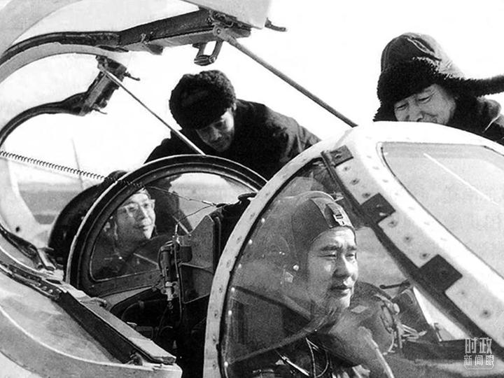 △顾诵芬(后座)乘战斗机上天,直接跟在歼-8飞机后面观察振动情况。(资料图)