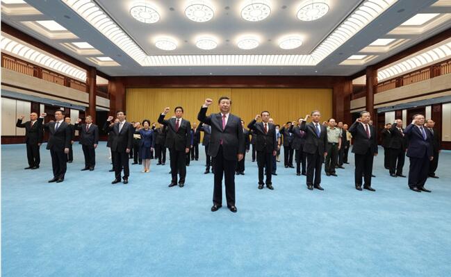 2018年,习近平成为首位对宪法宣誓的中国领导人,宣誓的场面进行了全程电视直播。