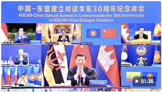 国家主席习近平22日上午在北京以视频方式出席并主持中国-东盟建立对话关系30周年纪念峰会。