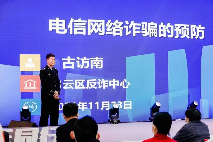 南方财经全媒体集团副总编辑张志斌致辞时表示,打造平安和谐的社会环境,是人民群众的向往,也是践行媒体工作的责任。一路走来的广东经济科教频道,是关注⽣活安全、倡导生活品质的第⼀道防线。希望与广大反诈宣传志愿者能深入各镇街、企业、商铺、家庭,为广大群众宣传反诈,提高广大群众防范诈骗意识,同时与公安部门一起全面推广安装国家反诈中心APP。