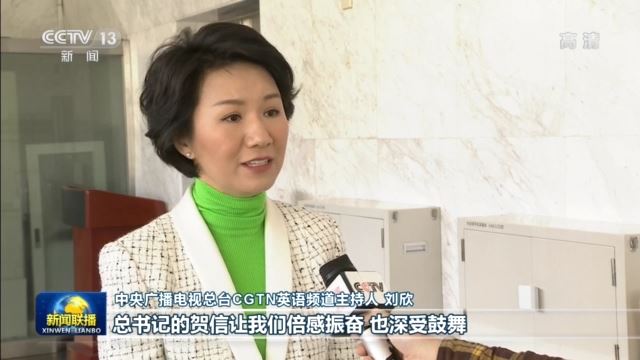 中央广播电视总台CGTN英语频道主持人 刘欣:总书记的贺信让我们倍感振奋,也深受鼓舞,同时也感到重任在肩,我们一定要继续努力,不负时代的使命,聚力融通中外,用生动鲜活的语言推动总书记的思想魅力春风化雨,广泛传播全世界。