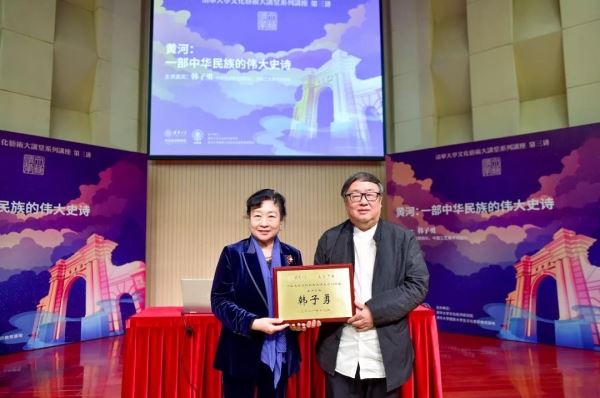 2021年12月10日,由清华大学文化经济研究院与清华大学国家大学生文化素质教育基地联合主办的清华大学文化艺术大讲堂(以下简称“文艺清华”)于清华大学拉开帷幕。此次讲座系“文艺清华”第三讲,继故宫博物院院长王旭东与中国美术馆馆长吴为山分别讲述故宫百年历史变迹与雕塑文化变迁发展之后,本期讲堂我们邀请到中国艺术研究院院长、中国工艺美术馆馆长韩子勇,讲述建设黄河国家文化公园对文化强国建设、对建构国家文化形象、对筑牢中华民族共同体意识、对中华文化的复兴和传承弘扬优秀传统文化的价值和意义。本期讲座由清华大学文化经济研究院副院长薛镭主持并作开场致辞。