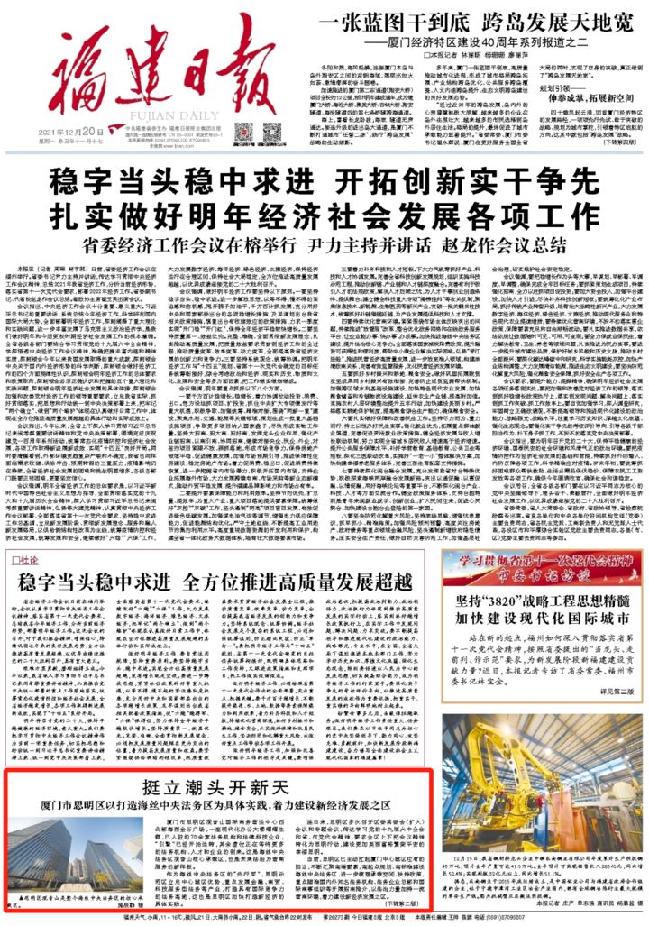 当前,思明区已主动扛起厦门中心城区应有的担当,不断汇聚高端要素,高起点规划、高标准建设海丝中央法务区,进一步梳理承载空间、扶持政策,重点瞄准国内外知名法务机构、法务企业总部和国际商事组织等开展招商推介,以法治力量加持一流营商环境,着力建设新经济发展之区。