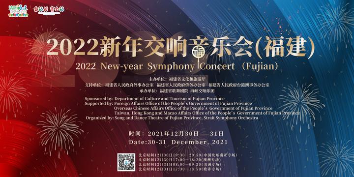 为发挥福建省21世纪海上丝绸之路核心区作用,持续扩大福建对外人文交流与旅游协作,增进与世界各个国家及地区的文明交流互鉴,由福建省文化和旅游厅主办,福建省人民政府外事办公室、福建省人民政府侨务办公室、福建省人民政府台港澳事务办公室支持,福建省歌舞剧院、海峡交响乐团承办的 2022年新年交响音乐会(福建)于2021年12月30日至31日在线上成功举办。4场直播总播放量超过1600万。