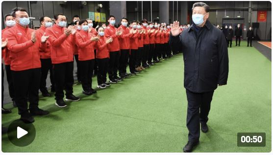 4日下午,习近平总书记来到北京二七厂冰雪项目训练基地。习近平勉励备战冬奥的运动员们说,大家很辛苦,很多人十年磨一剑、五年磨一剑。人生能有几回搏,拼搏是值得的,祝你们取得好成绩。临别时,大家齐声高呼:“中国冰雪,加油加油!”