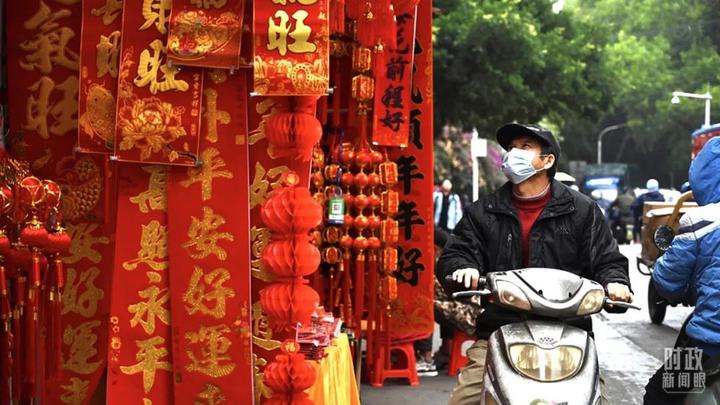 △广西南宁,路过的市民被琳琅满目的新春饰品吸引。