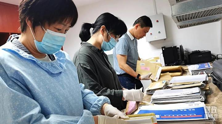 △福建福州,省纪委监委信访室干部正在处理信访件。