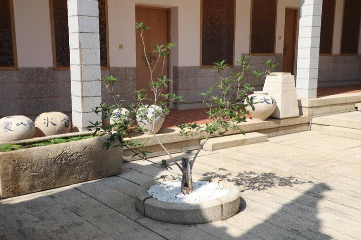 沿着小路走着,我们来到一座别具一格的单层建筑——归来堂。它是根据陈嘉庚遗愿,于1962年建成的:白石砌墙,绿瓦盖顶,具有闽南特色的代表性建筑。