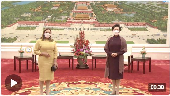 2月5日,国家主席习近平夫人彭丽媛在北京会见厄瓜多尔总统夫人阿尔西瓦。
