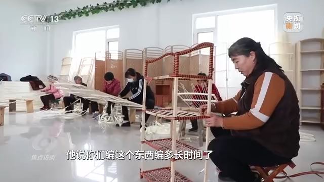 山东省东营市垦利区杨庙社区居民 刘爱英:总书记进来我们很激动,他说你们编这个东西编多长时间了,我说将近三年了。这一个多少钱?一月能收入多少钱?我说一个月能收入一千五百左右,夏天这里有风扇,冬天有地暖,在家门口能挣上钱,哪儿有这好事?