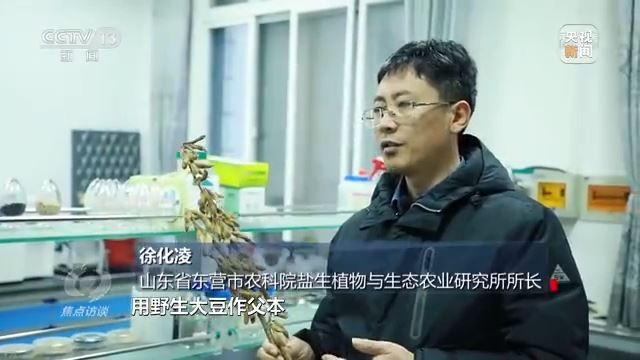 山东省东营市农科院盐生植物与生态农业研究所所长 徐化凌:我们用栽培大豆作母本,用野生大豆作父本,经过杂交回交十几年,培育出了一个既耐盐又高产的系号,今年这个系号到海南去加代繁殖了,明年可以参加国家的大豆区实验。