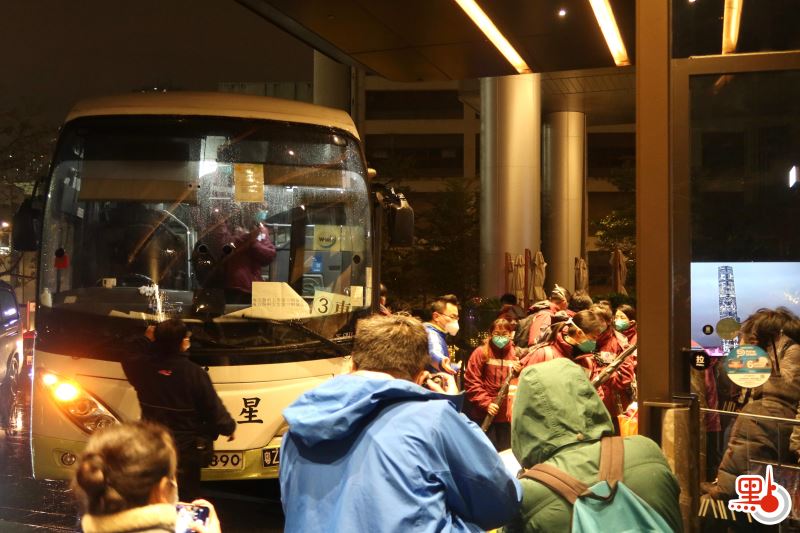 第二批內地援港抗疫醫療防疫工作隊今日晚抵達香港沙田石門帝逸酒店。(點新聞記者楊新雨攝)第五波新冠疫情似龍捲風般在這個寒冬無情地襲擊香港,每日新增個案數千,公營醫療系統崩潰,隔離設施用盡,蕭瑟的冷風帶走了等待救治者的體溫,也破滅了他們對香港的希望。在這危難之際,中央再次伸出援助之手,第二批內地援港抗疫醫療防疫工作隊今日(19日)下午冒着霏霏霪雨,經過深圳灣口岸,在全港市民的翹首期盼中,終於於約6時40分抵達了香港沙田石門帝逸酒店。