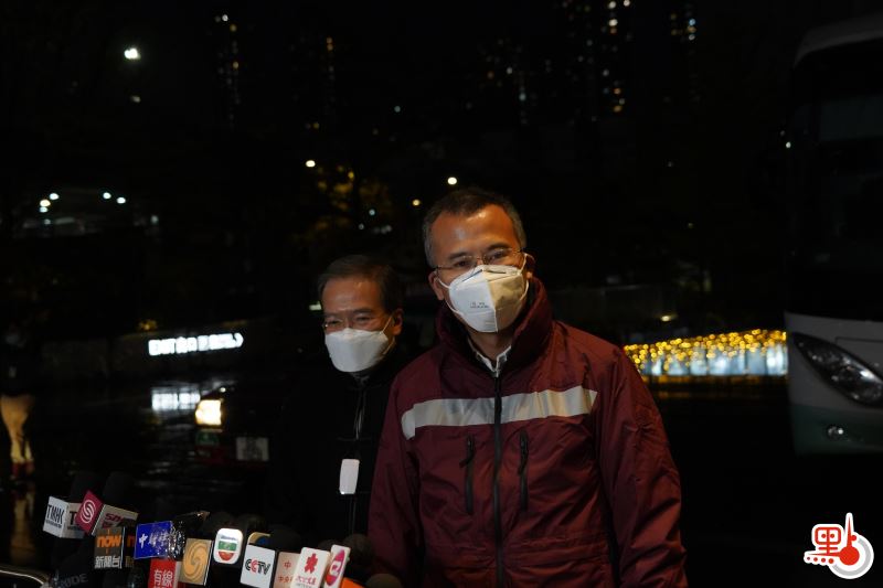 今次援港醫療隊的領隊是來自廣東省衞生健康委的副主任張玉潤醫生(右)。(點新聞記者攝)對於幫助香港戰勝第五波疫情,張玉潤表示有信心,「抗疫靠大家,人人都有責,要把抗疫措施落到實處,香港市民要尊守抗疫有關規定。」但是他也指出,目前香港第五波疫情還有巨大的不確定性,具體情況需要與香港的同行一起評估。之後便快速進入酒店。