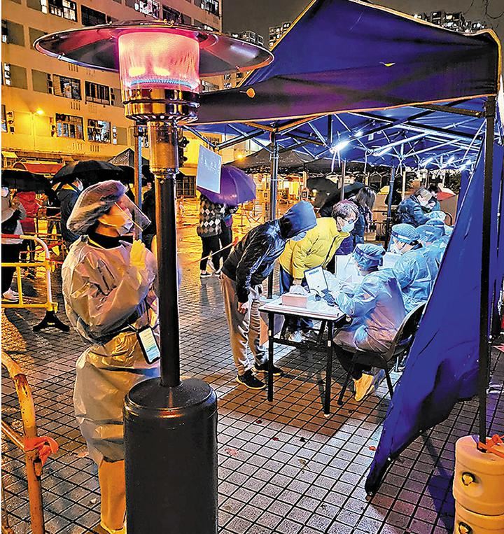 (香港文匯報記者 唐文、文森)香港昨日為入冬以來最冷一天,各區最低氣溫均跌至單位數,大部分地區達嚴寒水平(7度或以下),其中大帽山只有0.6度,而位於尖沙咀的天文台總部錄得8度,為入冬以來最低溫。除了天寒地凍,昨日更竟日有雨。特區政府近日行動起來全力投入抗疫,已收到立竿見影的效果。醫院管理局為免確診病人尤其長者在急診室外長時間等候入院,努力開闢室內空間收納輪候病人,昨日已不再有病人於寒風細雨中守候,部分醫院外設置的臨時帳篷正陸續拆卸。不過,由於全港各區都有大量病例,大批巿民仍要在寒風凜冽下到各檢測中心和流動採樣站進行病毒檢測,有檢測站架起有蓋帳篷以免排隊巿民淋雨,亦有團體捐贈戶外暖爐讓巿民取暖,盡顯人間有愛。有專家則建議所有檢測站設關愛隊讓長者優先入室內檢測,以免他們受寒。