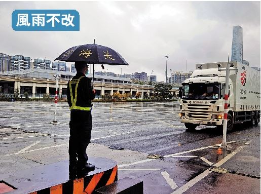 圖:廣東金發科技供應的二千五百萬個口罩,在風雨中出發運送到香港。香港防疫抗疫物資緊缺,內地企業積極響應。19日,由廣東金發科技股份有限公司(金發科技)生產的2500萬個國家標準KN95口罩連夜運抵香港。