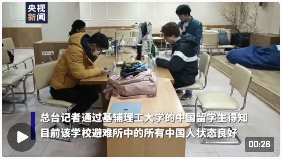 总台记者采访了在乌克兰基辅格林埃尔音乐学院就读的中国留学生。受访留学生目前位于音乐学院宿舍楼下的应急避难所。