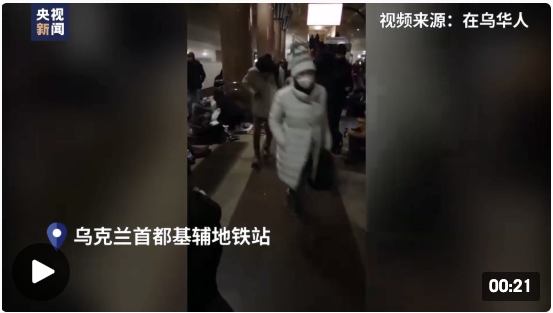 总台记者回传了在乌华人发来的视频,许多基辅市市民在地铁站内避难。当日她身处的基辅市中心发生激烈枪战。