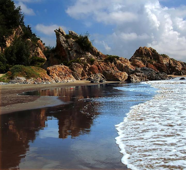 碧蓝的海水与成群海鸟构成一幅多彩的油画。踏上绵软的沙滩,沿着漫长曲折的海岸线漫步,眼前明净的海,让人忘却忧愁。