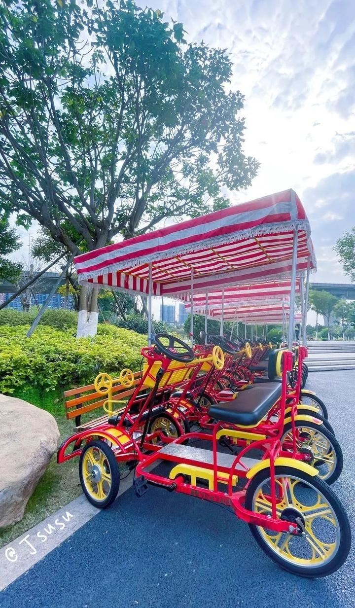 公园入口处立着高耸的大风车,颜色鲜艳,随风转动,清新又文艺。公园可以租观光自行车,沿着湖骑上一圈,感受春风的温柔。