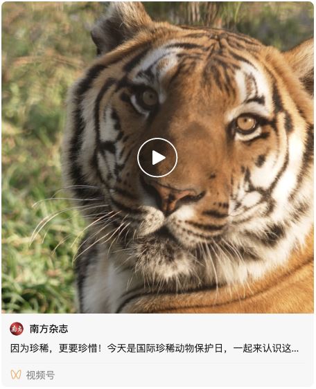 华南虎是中国特有的虎亚种,作为整个森林生态系统的旗舰物种,对整个森林生态系统具有重要的调控作用。华南虎先后被列为国家一级重点保护动物和世界十大濒危物种之首。