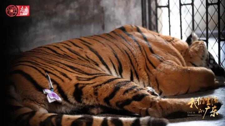 麻醉昏迷后的华南虎。