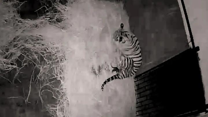 幼虎长大后离开保温箱,进入了户外区域生活。