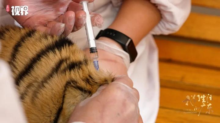饲养员给幼虎注射疫苗。