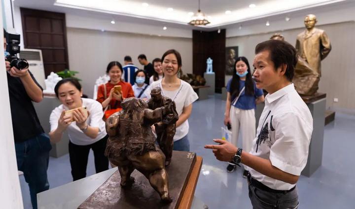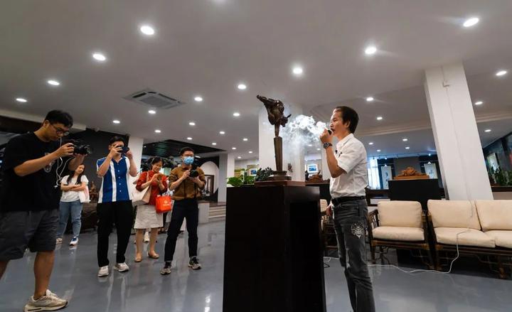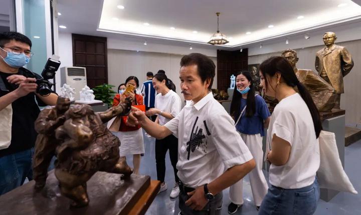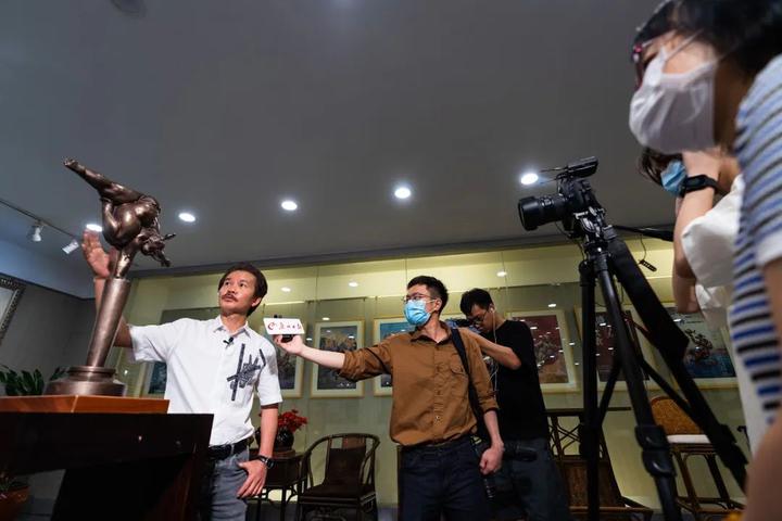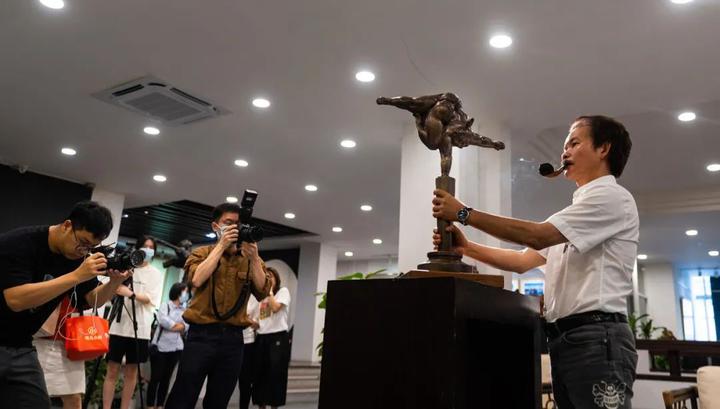 由全国政协委员、广州雕塑院院长许鸿飞为中国首档大型杂技文化节目《技惊四座》设计的奖杯引起媒体广泛关注,近日,中国青年报、羊城晚报、南方都市报、广州日报、信息时报、新快报、文汇报等多家媒体到访石磨坊,围绕作品《技惊四座》的设计理念与创作过程对许鸿飞进行了采访。