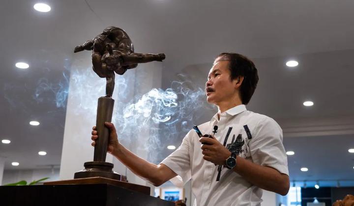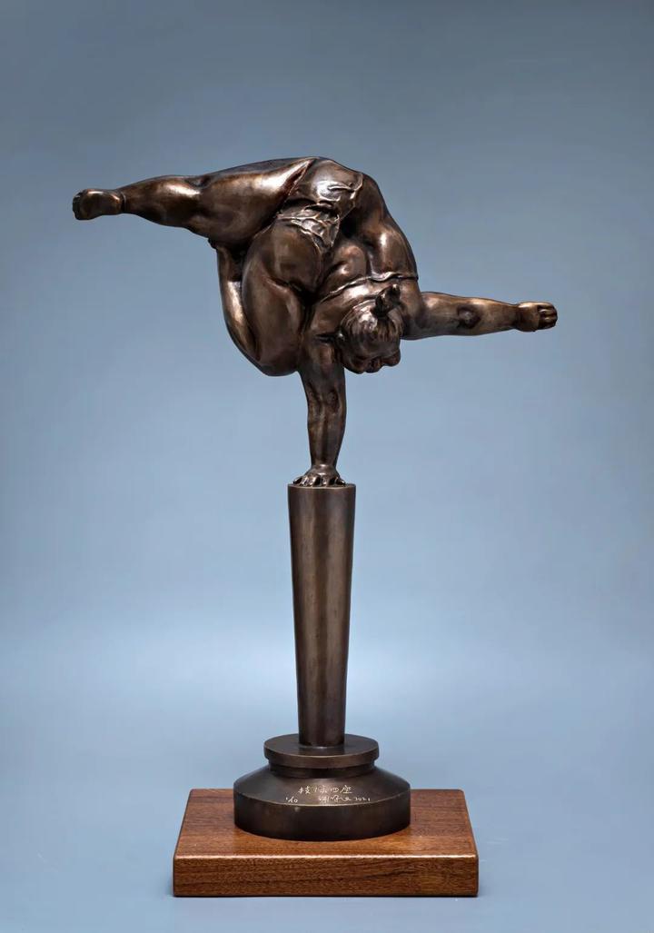 可爱的“肥女”单手支撑起整个身体,展现酷炫无比的顶技动作……杂技与雕塑的跨界碰撞,凝聚在雕塑大师许鸿飞亲手为中国首档大型杂技文化节目《技惊四座》设计的奖杯当中。