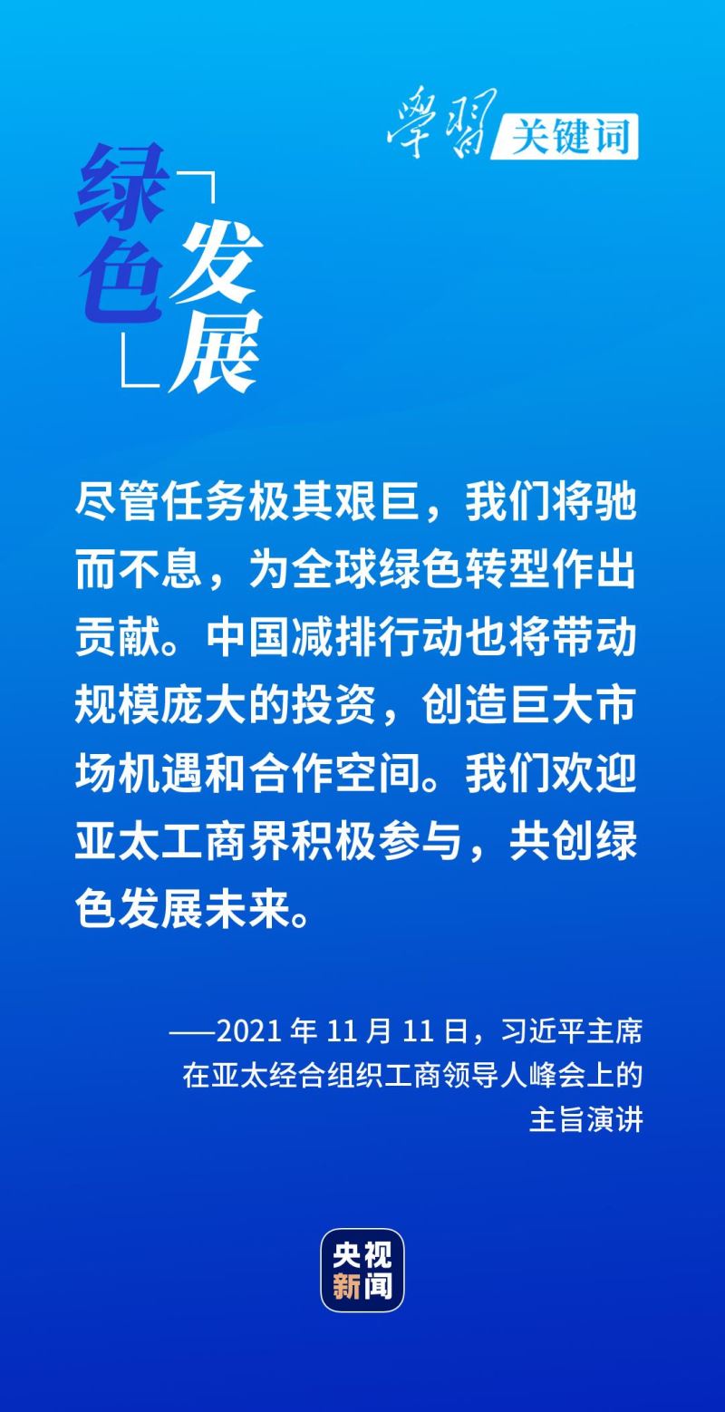 2021年7月16日,习近平主席在亚太经合组织领导人非正式会议上指出,我们要坚持以人为本,让良好生态环境成为全球经济社会可持续发展的重要支撑,实现绿色增长。