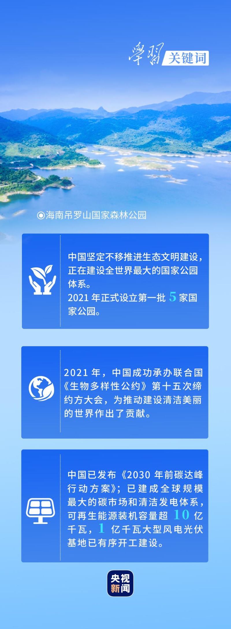 4月11日,正在海南考察的习近平总书记乘车沿蜿蜒山道,深入五指山片区。总书记强调,海南要坚持生态立省不动摇,把生态文明建设作为重中之重,对热带雨林实行严格保护,实现生态保护、绿色发展、民生改善相统一,向世界展示中国国家公园建设和生物多样性保护的丰硕成果。