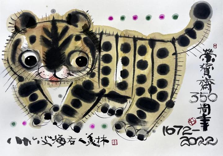 据中国电视报报道,随着大型纪录片《荣宝斋》在中央广播电视总台启拍,350岁荣宝斋的店庆活动拉开序幕。4月26日,继设计荣宝斋350周年纪念标识之后,著名艺术家韩美林先生又挥毫泼墨,以一幅虎虎生威、萌萌可爱的小老虎庆贺荣宝斋生日。今年是中国农历壬寅虎年,也是荣宝斋创设350周年。韩美林先生创作的这幅“萌虎图”受到广泛赞誉。那么,“萌萌虎”诞生的背后又有哪些故事呢?