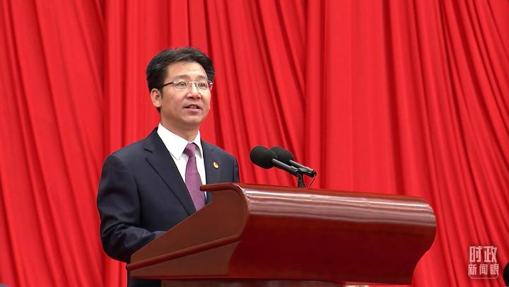 △共青团中央书记处第一书记贺军科在大会上发言。(总台央视记者 张晓鹏拍摄)