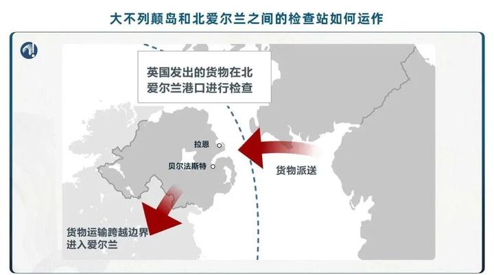 也就是说,爱尔兰岛在贸易往来上维持着之前的“统一”,大不列颠岛和北爱尔兰之间,反倒出现了一条关卡。