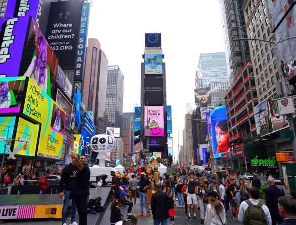 纽约时报广场位于美国纽约曼哈顿金融中心,是世界最热门的旅游地之一,每天吸引数以万计游客前来游览,被称为“世界的十字路口”。