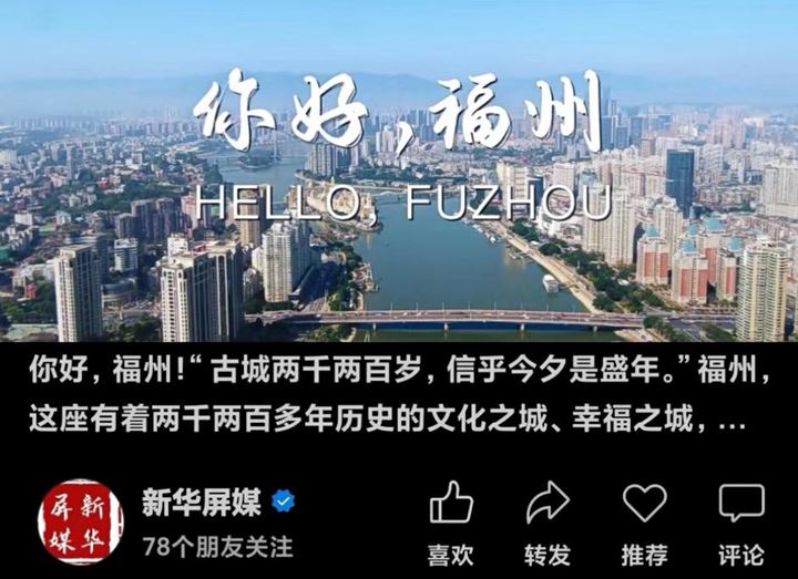 “新华屏媒”微信视频号展播《你好,福州》城市形象宣传片