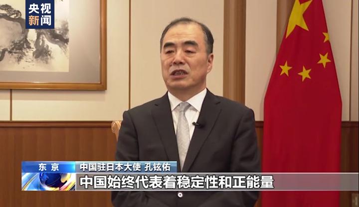 中国驻日本大使孔铉佑指出,中国始终代表着稳定性和正能量: