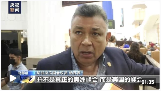 尼加拉瓜国际问题评论员 埃斯皮诺萨:面对美国一贯以来的傲慢态度,有14个拉美和加勒比国家表示反对。(他们)反对将古巴、尼加拉瓜和委内瑞拉排除在美洲峰会之外。但实际上我们本身也不愿意去加州参会,他们(美国)是在制造更大的分歧。(美国)试图用一种正式的方式和场合,将我们排除在外,目的是在未来从政治上,对我们进行攻击和干预。