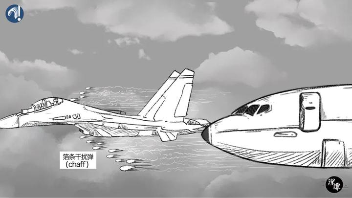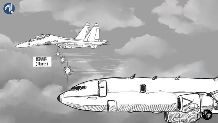 歼-16战斗机在P-8A巡逻机侧面飞行时,“释放了照明弹”;