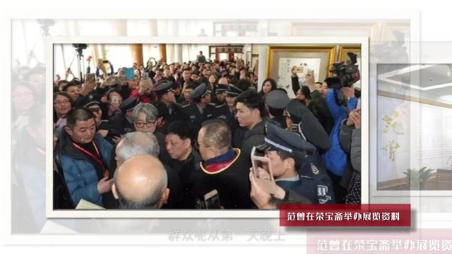 范曾先生的展览会印了专门的画册,有100本是范曾先生签名的,要排队买,开馆才能买。群众从第一天晚上就排队,要买这本范曾先生签名的书。