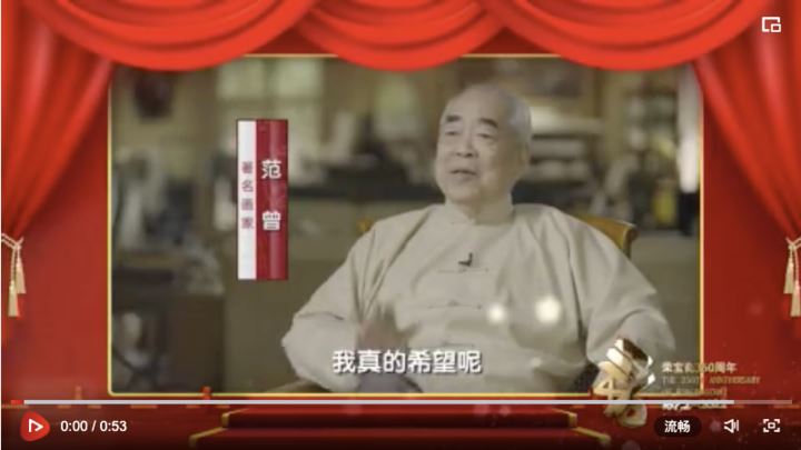 “荣宝斋和我这几十年交情,我不会忘记的。(第一是)它的起点高、立足点高;第二就是经营的合理性,没有任何欺诈;再加上(荣宝斋)和当代艺术家的情感。它不是一般卖画和收画的关系,所以,荣宝斋能有今天的地位,其他画店取代不了。”范曾先生表示。